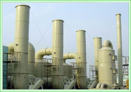 玻璃鋼洗滌塔是硫酸生產(chǎn)線的主要設(shè)備,該塔的主要作用是:由塔底進(jìn)塔的帶有礦塵、砷、硒、氟、二氧化硫等雜質(zhì)和二氧化碳?xì)怏w,經(jīng)填料層,由塔頂排出。而稀硫酸通過塔頂?shù)膰娮靽娏,使之填料層中氣液充分接觸,除去雜質(zhì),達(dá)到凈化氣體的作用。